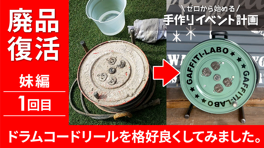 こちらの汚れたドラムリールコードを復活させて格好良く仕上げるという動画になります。